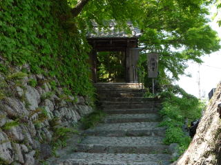 | お土産物屋が並ぶバス通りまで降りて裏手に回り石段を上る | |