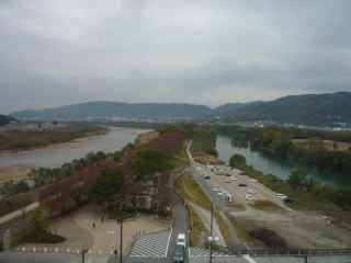 | 登りはケーブルカーを利用 | 遠く背割り堤を望む |