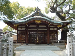 | 拝殿前にて | 楠正行公ご母堂が祀られる |