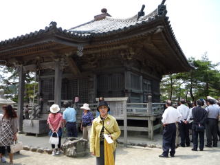 | 日本三景のひとつ松島見物をした、五大堂を背景に記念写真をして、早速観光船に乗り松島湾の島巡りをした。島巡りではウミネコへの餌やりや、珍しい形の島々を巡り美しさを堪能した。松島で残された時間があまりない中だったが瑞巌寺のお参りをせずにはおれずわずかの時間を駆け足でお参りしてきた。 | |
