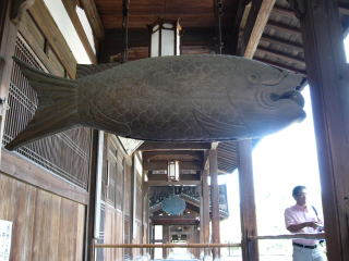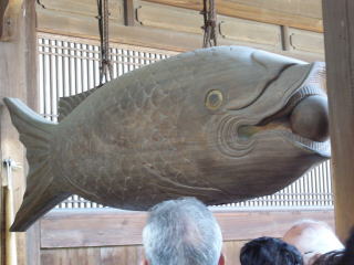 | 今日は定年退職者の行事で萬福寺へ行きました、寺院見学と法話を聞き普茶料理(黄檗宗の開祖隠元禅師が中国から伝えた精進料理)を味わいました。ここには30数年前に長男が1歳頃にお参りしました、記憶に残っていたのは、時間を告げる為の開版(魚の形をした木魚のような物です、後の記憶は余りありませんでした。立派な寺院で見ごたえが有りました。 |