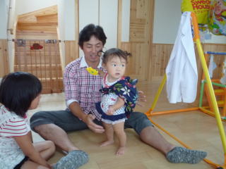 | お父さんだいすき | お祝いの一升餅を担ぎました |