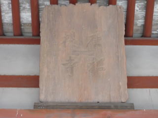 | 南大門から金堂を望む | 南大門にかかる唐招提寺の額 |