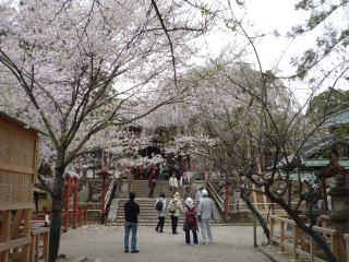 | 鳥居にかかる桜 | 境内もたくさんの桜が咲き乱れる |