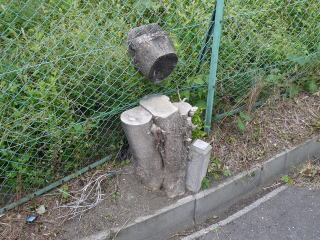 第二京阪道工事のために切られていたが、金網を巻き込んだ逞しい木が有った