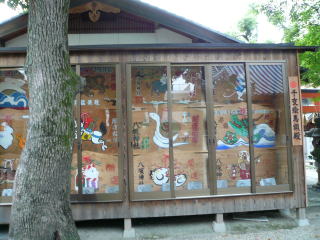 境内には干支の絵馬額が飾られている、夕方であり子供が境内で遊んでいた