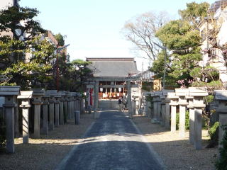 | 今日は温かく隣の駅(大和田)近くまで歩き用事をしてきた、帰り道にいつもは通らない通りに向かったら、立派な鳥居が見えてきたのでお参りをしようと立ち寄った。 門真市宮野町にあり、淀川の支流・古川の南岸のかつての茨田堤の際に鎮座する。旧社格は村社。祭神は彦八井耳命・菅原道真である。茨田堤築造に関係の深い茨田氏が、堤の鎮守として祖神・彦八井耳命を祀ったものと伝えられる。 |