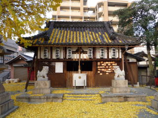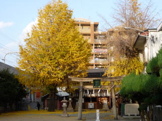 | 夕方からの会合に向け、寝屋川駅から目的地まで歩いて行った。途中住吉神社の銀杏が鮮やかに色づいていたので、お参りがてら写真を写してきた。このように絨毯を敷き詰めた阿様な落ち葉は久しぶりの光景だった。ここは寝屋川えびすとして近郊では有名で、1月9日から11日は1年のかなりのお参りが集中する時期になる。 | |