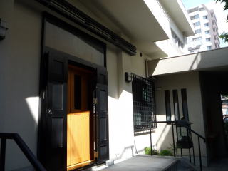 | お寺ビルになっている山門 | 本堂も斜めから撮影 |