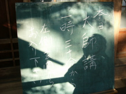 丁度この日はお大師様の日で太子講が行われると言う事で、檀家さんがお参りに来て、私たちがお参りが済んで境内を見ていましたら、30分程で終わるから、一緒に上がりなさいと誘って頂き、上がらせて頂きました。檀家さんが20人ほど集まっていました、住職さんが来られ皆でお経をあげました。その後住職さんのお説教が有り、結局1時間ほど参加させて頂きました。 |