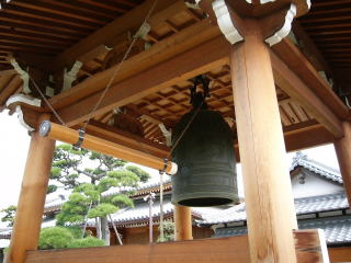 | 当寺は聖武天皇の御代(724〜49)に、行基菩薩によって創建されたと伝えられる。その後帝享3年(1686)の縁起書によると、織田信長の荒木村重討伐の際兵火にかかり、藤原時代の本尊・聖観音菩薩を焼失してしまった。これを嘆いたその時の住職が、本尊・聖観音菩薩の脇侍であった毘沙門天・延命地蔵菩薩のうちの延命地蔵菩薩を本堂におまつりし、聖観音菩薩像を再興し観音堂に安置し、その脇侍として、不動明王、毘沙門天、そして伊丹7福神の一神に数えられる布袋尊がまつられている。山門を入ると立派な鐘楼堂(鎌倉時代の代表的な建築物といわれ市の文化財に指定されている、と解説本に有るが、先の阪神大震災で本堂ともに倒壊し再建されて真新しくなっている)また境内に樹齢数百年と言われる20m程の長い枝を伸ばした立派な松が有るが、この松は震災にも負け無かったとの事であった。 |