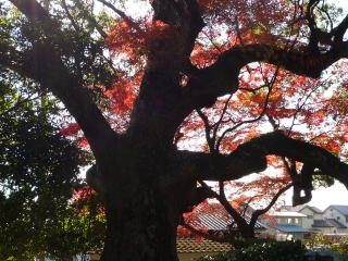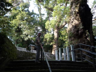 | 階段両側には大楠がある | 大楠と紅葉が見事であった |