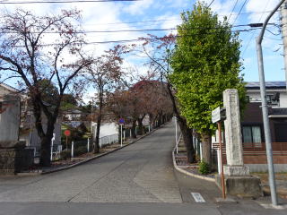 | 駅前から800mほど進むと急坂の参道 | さらに急階段が迎えてくれる |
